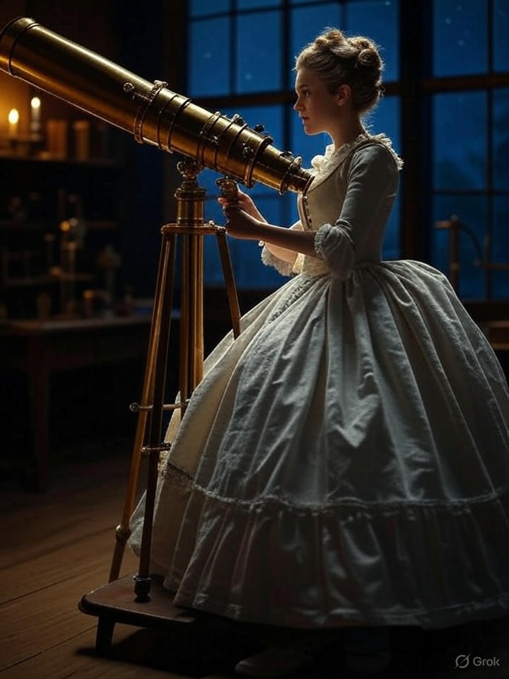 Astronomie im 18. Jahrhundert hieß: lange Nächte im kalten Garten, Teleskope, die wackelten, und viele Teekannen. Caroline hielt durch, auch wenn sie sich manchmal über frierende Finger beklagte. Sie notierte gewissenhaft jede Beobachtung. Bald merkte sie, dass sie selbst ein gutes Auge für ungewöhnliche Himmelsobjekte hatte.
